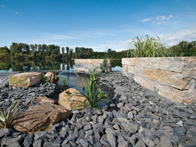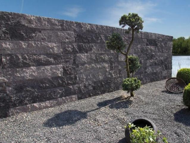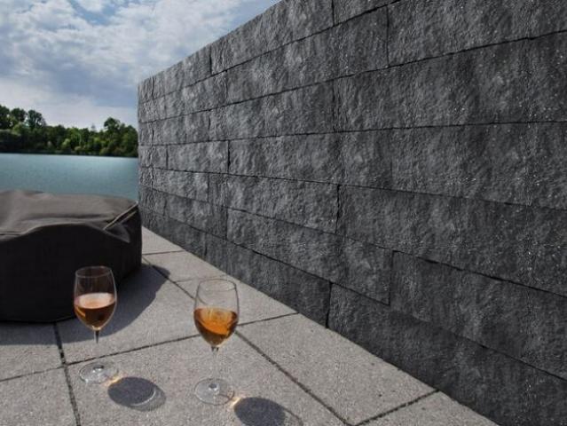 In Anlehnung an die Namensgebung ist ein großes, schlank proportioniertes Längsformat das Grundelement der Trento Mur Long. Die besondere Linienführung prägt die Optik der edlen, leicht topografierten Naturstein-Oberfläche. Endsteine komplettieren das System. Die Mauerbreite beträgt 20 cm.