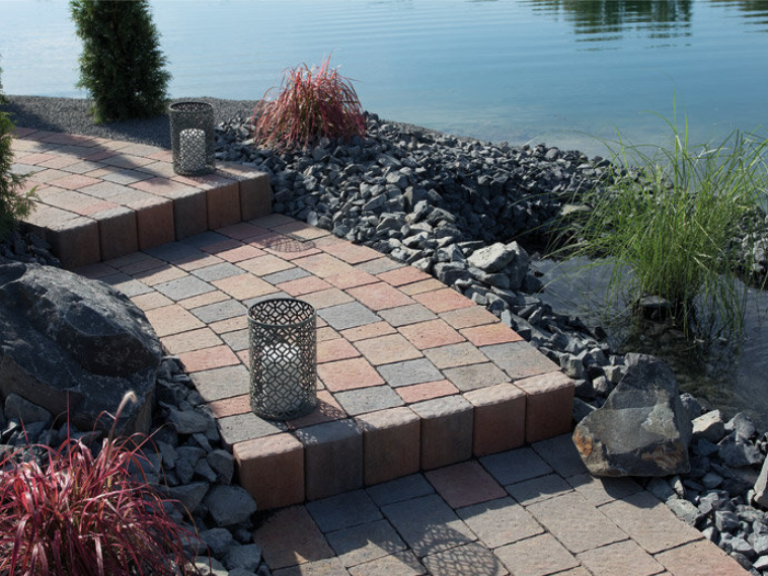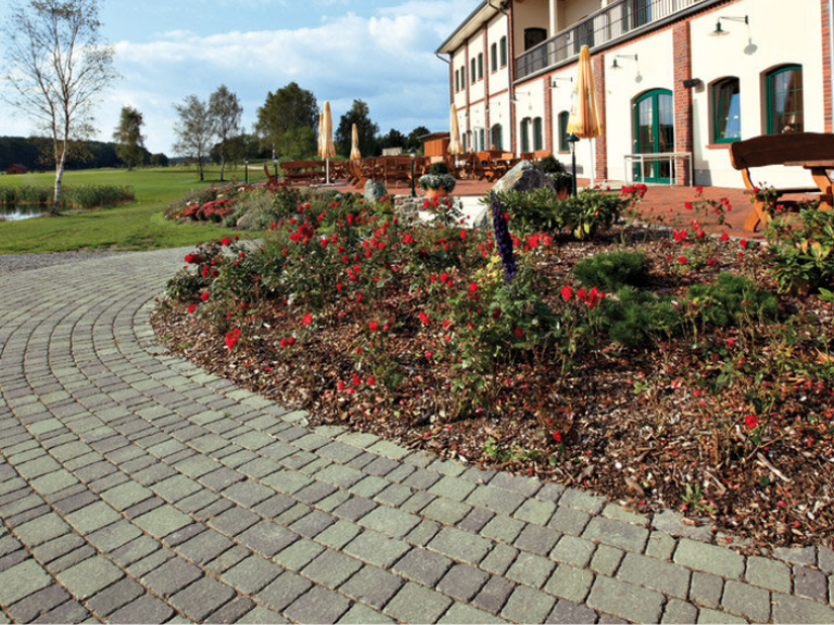 Das Beganit Großpflaster zeugt von einzigartiger Flexibilität. Es ermöglicht verschiedenste Verlegevariationen und Flächenbilder, angefangen bei Reihenverlegungen bis hin zu geschwungenen Wegeführungen. Die Seitenflächen der vier verschiedenen Formate folgen einem schrägen Verlauf. Die Oberfläche ist leicht gewellt ausgeprägt, wodurch die natürliche Wirkung des Pflasters zusätzlich betont wird.