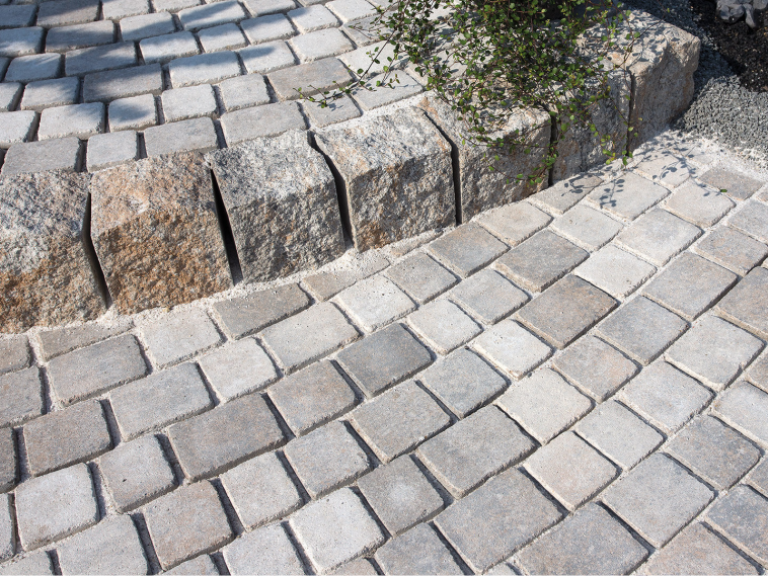 Das Bogenpflaster bietet grenzenlose Gestaltungsmöglichkeiten. Mit den sechs kleinen Steinen des Systems werden Flächen fein untergliedert, wobei die Anordnung nach definierten Mustern, wie zum Beispiel Kreise oder Schuppen, erfolgen kann oder ohne jede Regel im wilden Reihenverband. Als Einfassung oder Bänderung von Beeten, Treppenstufen oder Flächen ist das Bogenpflaster ebenfalls wunderbar geeignet.
