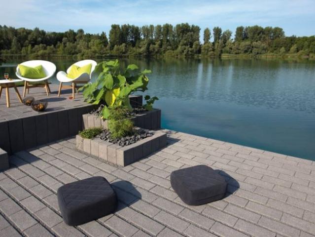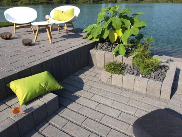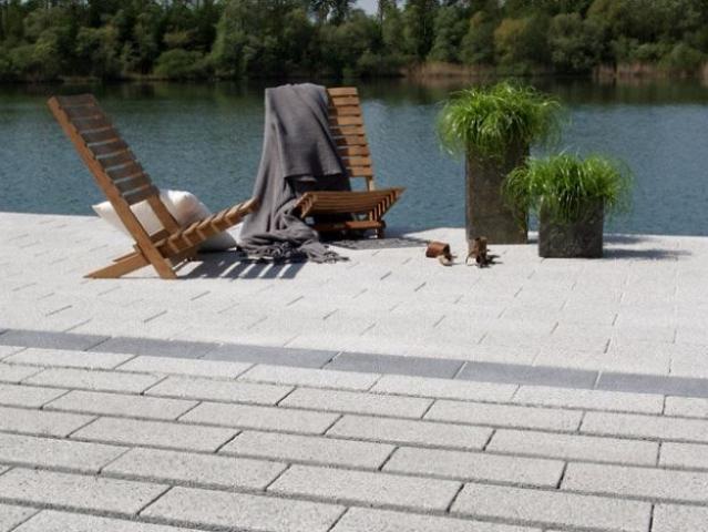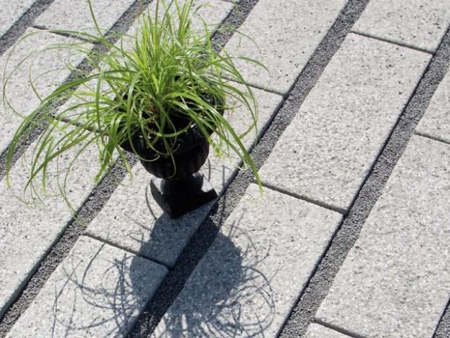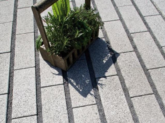 Mit Vista Green lassen sich interessante, ausdrucksstarke Akzente setzen. Die linear aufgeweiteten Fugen an der Steinlängsseite können je nach Anforderung und Gestaltungswunsch wahlweise mit Splitt gefüllt oder begrünt werden. Eine übergangslose Kombination mit dem Gestaltungspflaster Vista ist möglich.