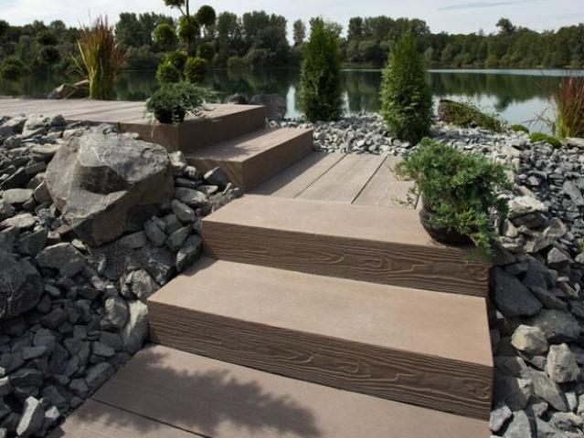 Timber Blockstufen sehen durch ihre fein gezeichnete Holzoptik dem natürlichen Vorbild zum Verwechseln ähnlich. Sie sind optisch ideal auf die Terrassenplatten Timber abgestimmt, sind aber auch alleinstehend ein wahrer Hingucker. Die seitliche Ausbildung als zusätzliche Sichtfläche macht auch einen freien Einbau ohne Probleme möglich.