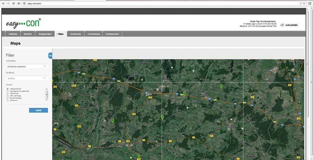 Die neue easy con-Steuerung ermöglicht die Fernüberwachung der Anlage. So loggen Sie sich über Ihren gesicherten Zugang ein, können die Parameter steuern, kontrollieren und das Betriebstagebuch ausdrucken.