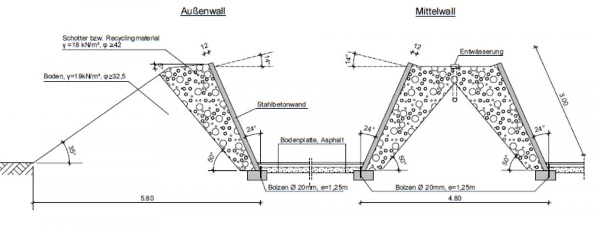 Statische Berechnung einschließlich des Erdwalls